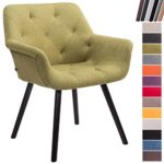 Durch die gepolsterte Sitzfläche und die bequemen Armlehnen bietet dieser Esszimmerstuhl einen hohen Sitzkomfort. Der stilvolle Stuhl mit pflegeleichtem Stoffbezug fügt sich durch das schlichte edle Design harmonisch in jeden Raum ein.