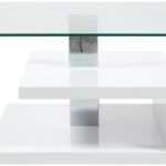 Material: Tischplatte aus Glas klar 8 mm. Fuß MDF Holz hochglanz lackiert weiß.