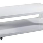 Lieferumfang: 1 x Wohnzimmertisch mit Rollen (4 Stück, aus hartem Kunststoff) / 105x58x38cm (LxBxH) / Hochglanz Weiß