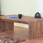 • Der Couchtisch aus Sheesham wurde ohne eine Ablagefläche konstruiert