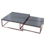 Dieses Raumwunder ist da genau die richtige Wahl. Der elegante Tisch besteht aus zwei Elementen, die besonders variabel miteinander fungieren. Die offene Tischbeinkonstruktion verleiht dem Couchtisch trotz seiner Größe einen filigranen Charakter und erlaubt das Ineinanderschieben der Tische. So bekommen Sie immer genau die Abstellfläche, die Sie gerade benötigen. Ob übereinander oder nebeneinander: Der Beistelltisch begeistert mit cleanem, modernem Design und intelligenter Funktionalität. Das matte Schwarz der Tischplatten harmoniert wunderbar mit dem kupferfarbenen Gestell und sorgt dafür, dass der Tisch modern und elegant zugleich wirkt. Somit lässt er sich vielfältig kombinieren und passt zu unterschiedlichen Wohnstilen. Unser Tipp: Auf dunklem Boden wirkt er besonders schön dabei ist das Material des Bodens unwichtig, der Tisch kann auf einem Teppich ebenso toll platziert werden wie auf hellem Holz oder Fliesen.