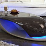 Die indirekte, blaue Beleuchtung kann bei Bedarf dazugeschaltet werden – das Farbenspiel der LED-Beleuchtung und die geschwungenen Formen des Couchtisches tauchen jeden Wohnraum, ob Wohnzimmer oder Partyraum, in ein stylisches Ambiente