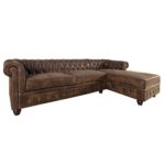 Ein edles Ecksofa im Chesterfield Stil Produktbeschreibung: Dieses auslandende Ecksofa besticht vor allem mit seinem klassischen Chesterfield Design und seinem dafür charakteristischen Antik Look. Die hochwertige Microfaser wurde dabei in herausragender Handwerkskunst in eine absolut perfekte Form gebracht! Das imposante Sofa beeindruckt mit den typischen Chesterfield Merkmalen, wie gebogenen Armlehnen, aufwendig mit Knöpfen verzierte und gesteppten Arm- und Rückenlehnen und den per Hand gesetzten dekorativen Nieten. Der Rahmen ist ebenso aus einem stabilen Massivholz gefertigt, wie die farblich abgestimmten Holzfüße. Zusätzlich bietet die großzügige Polsterung Ihnen einen uneingeschränkten Sitzkomfort. Ein garantiertes Highlight in Ihrem Ambiente und für Liebhaber des englischen Stils!
