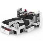 inklusive Kopfteil als Regalwand mit vielen offenen Fächern und 2 Schubladen