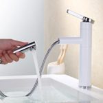1. Mit ausziehbarer Brause, durch den ausziehbaren Schlauch ist diese Armatur ein praktischer und schicker Helfer in Ihrer Badzimmer, können Sie einfacher zu Ihre Spültisch reinigen und waschen Sie Ihre Haare und Gesicht.