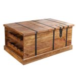 Mit unserem individuellem und bezauberndem Couchtisch “BODEGA” bringen wir Ihnen ein absolutes Design-Highlight in Ihr Zuhause. Selbst in Räumen, die im Einrichtungsstil eher reduziert und zurückhaltend gestaltet sind, sticht dieses unverwechselbare Möbelstück hervor. Diese Weintruhe besteht aus Sheesham Holz und wurde aufwendig in Handarbeit gefertigt. Die hochwertigen Metallbeschläge sorgen für einen weiteren Hingucker und zusätzliche Stabilität. Das Highlight dieser Truhe besteht aber vor allem in Ihrer Praktikabilität – Sie können mit dieser Weintruhe Ihre Weinflaschen optimal präsentieren und haben genügend Platz für weiteres Barmaterial wie passende Weingläser oder Korkenzieher. Das Platzangebot dieses Tisches ist also einzigartig – an der Seite der Kiste befinden sich die Halterungen für Ihre Weinflaschen und im Inneren weitere Ablagemöglichkeiten und Fächer – wie eine hauseigene Bar. Der Couchtisch kann sowohl als Dekoration, Aufbewahrung, Bank als auch Couchtisch genutzt werden, ob für Ihr Wohnzimmer oder gar Ihren Flur oder Wintergarten. Die aufregende Struktur und Maserung des Holzes hebt sich bei dieser Hausbar besonders hervor.