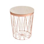 Ein moderner Metall Korb in der Trendfarbe Kupfer, der gleichzeitig auch Couch- und Beistelltisch ist, der besondere Clou des Tisches – die Tischplatte lässt sich abnehmen, so kann der Innenraum als Stauraum genutzt werden