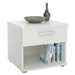 – Die Nachtkommode ist aus Spanplatte in E1-Qualität gefertigt mit einer melaminharzbeschichteten Oberfläche in weiß matt.