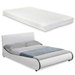 Der Bezug des Bettes ist aus Kunstleder und das Lattenrost besteht aus Stecklatten
