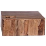 Der Couchtisch aus massivem Shishamholz wird sofort alle Blicke auf sich ziehen. Mit seiner komfortablen Größe von 90 x 90 cm passt vor jede Art von Sofa. Dank der Vertiefung bietet der Couchtisch hervorragend Platz für Kleinkram oder auch mal für Flaschen. Das Design des Tisches ist ein optisches Highlight für alle, die Ihrem Wohnzimmer etwas Besonders geben wollen. Die Maserung des Holzes ist vollkommen natürlich, sodass kein Tisch dem anderen gleicht und man ein Unikat bekommt, wenn man sich für diesen Couchtisch entscheidet.