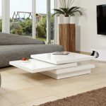 Der Couchtisch “Giaco” lenkt dank des ausgefallenen Designs die Blicke auf sich. Klare Linien und ungewöhnliche Form vereinen sich in einem modernen Möbelstück. Die hochglanz lackierte Oberfläche in weiß setzt weitere Akzente. Der besondere Clou: Der Couchtisch ist mit einer drehbaren Platte ausgestattet, so dass er erweiterbar ist und noch mehr Fläche bietet.