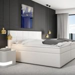 SAM® Design Boxspringbett mit Samolux®-Bezug in weiß, LED-Beleuchtung, Bonellfederkern, 7-Zonen H2 Taschenfederkern-Matratzen, Viscoschaum-Topper, Memory-Effekt, optimale Einstiegshöhe, 180 x 200 cm