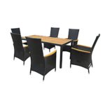 Robuste Oberfläche – Polyrattan ist ein hochwertiger Kunststoff der pflegeleicht und wetterfest ist. Die Holzfläche ist zum Schutz geölt. Verschmutzungen können problemlos feucht abgewischt werden.