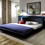 Stilvolles Designbett in der Ausführung schwarz mit weißen Steppnähten.