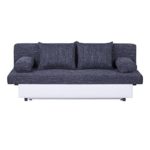 – Das Schlafsofa ist aus Holz und Spanplatte gefertigt, mit einem hochwertigen Schaumstoff abgepolstert und mit einem schwarzem Strukturstoff und weißem Kunstleder bezogen.